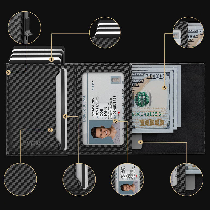 RFID Blocking Technology: Protects your cards from electronic theft and unauthorized scans