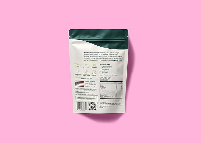 BoochBod Probiotic Kombucha Gummies – Bloating Relief | Gut Health, Digestion, & Metabolism Support | Pre/Postbiotics, Slippery Elm, Dandelion Root, Fiber Supplement