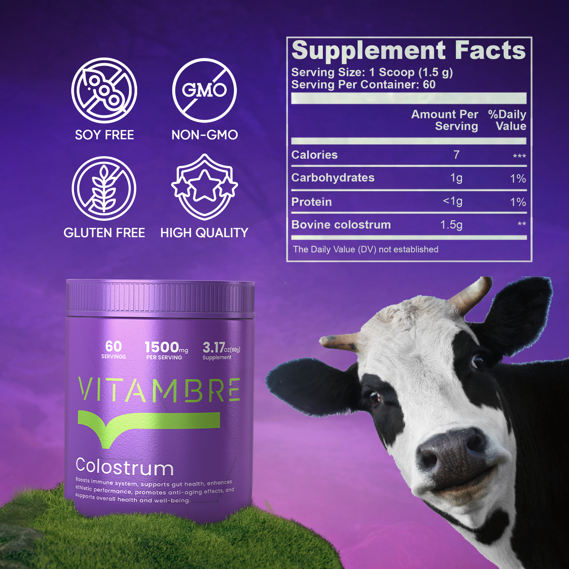 Support your body from the inside out with Vitambre Grass-Fed Bovine Colostrum—a potent, all-natural protein powder that promotes gut health, radiant skin, and strong immunity. Harvested from grass-fed cows, this pure colostrum is packed with immunoglobulins, growth factors, and proteins that enhance your body’s natural healing and regeneration processes.